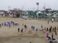 1の1は、自分たちでコートのラインを引いています。ジャングルジムに集合しているのは、3の1のみなさん。