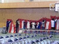 体育館内では、机・いすの位置を再確認