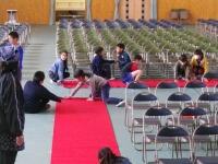 が「式場設営③ 赤い絨毯敷き