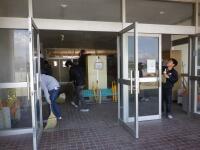 窓を拭いたり、ロッカーや棚の中をきれいにしたり、教室前の水道