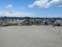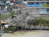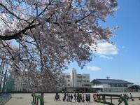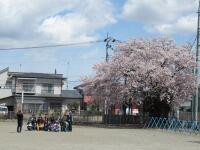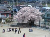 合戦場小学校の校庭には、北東の角にピンク色、西側ブランコのとなりに白色の花びらの桜の木があります。