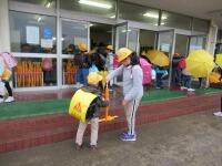 をしてくれています。昇降口では、かさをくるくるとまとめて