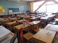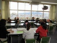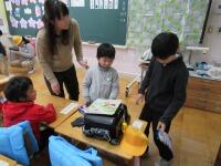 教室では、教科書のしまい方を教えて