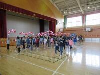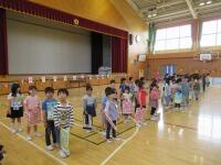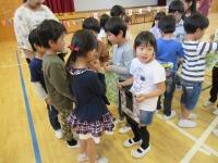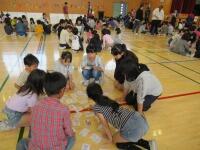 一緒に楽しく遊んだあとは、1年生に『合小校歌入り下敷き』のプレゼントを渡して、みんなで校歌を歌いました。