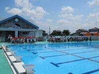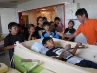 まずは小さいプールで水慣れの運動。6年生と一緒に流れるプールを楽しんだり水中じゃんけんをしたりしました。