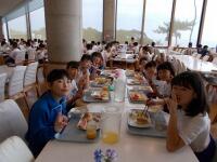 海の見える大きな食堂で昼食をとった後、午後の活動は「なぎさ活動」。イベント広場に集合して、砂浜での活動や海に入っての活動に、大喜び!歓声が上がりました。