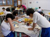 2日目午前中の活動は「マリンアート」!先生の説明を聞いたら、さっそく工夫して、貝殻を使った製作活動!!すてきな作品ができました。