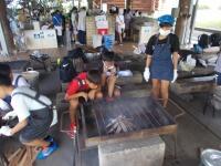 いよいよ最終日。「野外調理」に挑戦です。道具を準備して、説明を聞いたら、まずは、火をおこして、、、