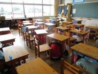 地震の後に理科室から出火したことを想定しての訓練、静かに