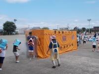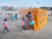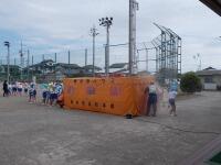 煙体験は、ハンカチやタオルで鼻と口をふさいで、煙の充満しているテントの中に入る体験を、全児童が行いました。