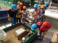 1年生も畑にやってきました。マルチをはがしたところから、一生懸命に掘っていきます。川上さんもスコップで、掘るお手伝いをしてくださいました。「掘れました~