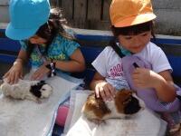 ふれあいコーナーでえさをあげたり、ひざの上にモルモットをのせてもらってふれあったり、ポニーに乗ったり、