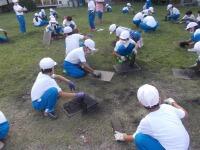 合戦場小学校では毎年、学校南側の川上さんの畑