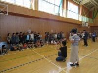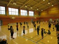 輪投げ』の4回目が体育館で行われました。平川下の老人会のみなさんが来校してくださり、1の2、6の2のみなさんと輪投げ