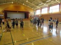 ドッジボール!』を体育館で行いました。開会式の後、しっかりと準備運動をして、、、