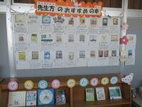 を紹介しています。図書室前の廊下には、先生方の書いた紹介カード