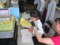 を見せていただいたり、投げ方を教えていただいたりして、どんどん輪が入るようになりました。5年生は投げる位置を少し遠い所にしてチャレンジ