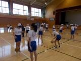 ドッジボール!』を体育館で行いました。開会式の後、しっかりと準備運動をして、、、