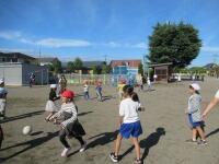さっそく班ごとに、ケイドロ、こおりおに、ふやしおに、ドッジボール、ネコとねずみ、へびおに、ちゅうせんふみ、王様ドッジボール等の遊びを楽しみ
