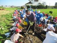で、さつまいも掘りやジャガイモ掘りの収穫体験