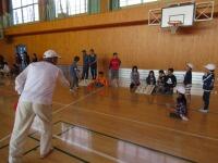 を見せていただいたり、投げ方を教えていただいたりして、どんどん輪が入るようになりました。5年生は投げる位置を少し遠い所にしてチャレンジ