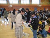6年生の人数や好きな遊び、小学校生活の一番の思い出などがクイズになっていて、正解できている班が多かったです。