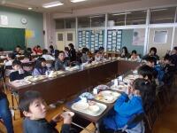 みんなそろったら、「いただきま~す。」卒業する6年生といっしょに、おいしい会食
