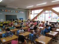 」1年生は出席をとっているところ、先生に名前を呼ばれたら「はい、元気です。」とお返事