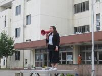 今日はさっそく、下校時に全校生に紹介の時間をとりました。水曜日から、ジェラ先生の授業