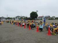」で、カラーコーンに合わせて間隔を開けて並ぶようにしました。これからの学校生活では、集合した時にも、間隔を開ける習慣を身につけていきましょう。