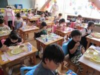 1年生も準備ができました。みなさんそろって「いただきます。」