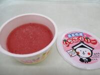 いちごゼリー」のメニューでした。栃木市で作られた「米・ぶた肉・トマト・いちご」が使われています。