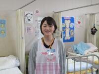して、手をつないでご案内しています。職員室では、教頭先生に元気