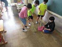 』を行いました。保健室の前に間隔を空けて貼ってあるテープに沿って