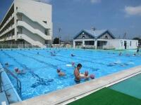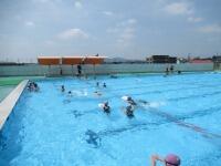 の授業がありました。合戦場小学校のプールは大きいので、運動量
