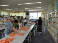 読み聞かせ修了後、お時間のあるボランティアさん方には会議室で、今日の読み聞かせの記録