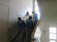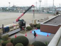 でつり上げて運搬車から下ろし、気をつけて搬入してくれました。