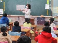 リズムにのって「red black white blue,、、、」みんなとっても楽しそう。たくさんの色の言い方を教えていただきました。