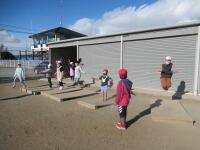 を跳んでいます。その向こうでは4年生が王様ドッジボール