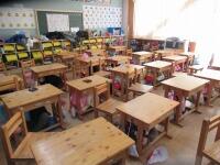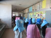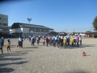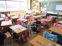 で、防災頭巾をかぶって校庭に避難しました。3・6年生は非常階段から避難しました。校内で放送