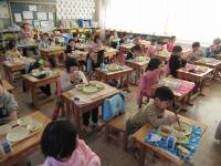 よくかんで食べていました。小林先生の「お話玉手箱」の放送