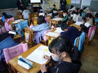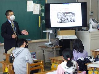 〇クイズを交えながら、浪平翁の生涯についてわかりやすく教えてくださいました。浪平翁については、子どもたちはもちろん知っていましたが、翁の波乱万丈の生き方を聞き、子どもたちも新たな発見をしたようです。