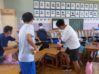 今回は、3年1組に不審者が侵入した想定で行いました。