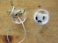 事前に、班ごとに条件を変えてひらめきインゲンマメを育てていました汗・焦る。1~3班は「あたたかい-冷たい?!」で4~6班は「水あり-なし?!」で育ててきました。まず、それぞれの違いひらめきを、班ごとに確認虫眼鏡しました。