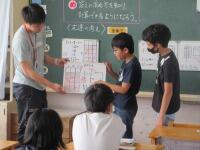 結果から分かったことひらめきを、班ごとにホワイトボードにまとめ鉛筆、発表しましたお知らせ