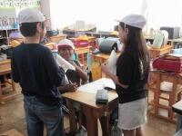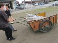 ベテラン職員笑うが慣れた手つき動物で骨組みを組み立てます。「これは、ここ、あれは、そこ。」声を掛け合いながらお知らせ、手際よく進めていきました急ぎ