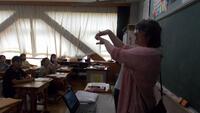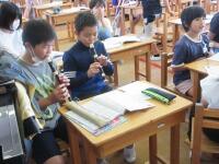 次は、今月の歌です。ビートルズの "Hello goodbye" を歌ました。今月、続けているので子どもたちも歌詞を覚えて、元気な歌声が教室に響き渡ります。