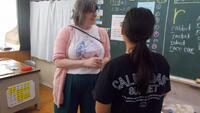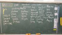 次は、週に1回、セーラ先生とフォニックスです。今日は” r " です。下の使い方や、"r”の発音が入っている単語を探します。たくさん見つけることができました。