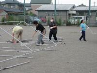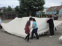 今日の放課後学校に、職員作業汗・焦るでスポフェス用のテントを設営急ぎしました。今回は、本部側のテント星ですが、明日以降、児童席グループについても設営します汗・焦る。テント設営の機会の少ない若手職員にっこりの研修!も兼ねて、みんなで設営汗・焦るしました。