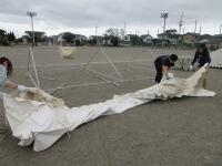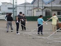 強風対策として、脚の部分に砂袋星も付けました。ここ最近はだいぶ涼しくなりましたが、まだ日差し晴れは強いので、今年度は児童席にもテントを設置します汗・焦る。メールでもお知らせ致しましたが、片付けの際には、保護者の皆様のご協力汗・焦るをいただければと思いますキラキラ。可能な範囲で、よろしくお願いしますキラキラ